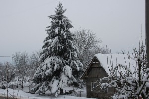 Jučer je padao mokar, ali noćas je napadao suhi …10 cm. Nije to nešto puno, ali priroda je prelijepa. Sve je ovalno bijelo.
