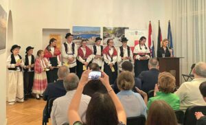 Berlin/ Kulturna večer naslova “To je moja zemlja – hrvatska prošlost-baština budućnosti” upriličena u Veleposlanstvu Republike Hrvatske u Berlinu povodom 1100. obljetnice Hrvatskoga Kraljevstva, završila je prelijepom glazbeno -scenskom slikom u kojoj su zajedno stajali svi sudionici u programu i radosno pjevali: “Moja domovina, moja domovina, ima snagu zlatnog žita, ima oči boje mora, moja zemlja Hrvatska…”