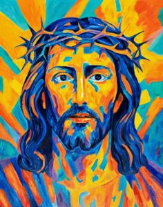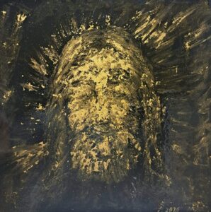 Dvije slike koje ovdje promatramo predstavljaju primjere ovog pokušaja umjetnika da promatrača udalji od poistovjećivanja koje bi moglo iskriviti poruku: s jedne strane lice inspirirano pop-kulturom, Krist izgrađen na izmjeni žute i plave boje; s druge strane neka vrsta otiska koji kao da dolazi sa Torinskog platna, s fizionomijom oblikovanom zemljanim i pjeskovitim potezima kista.